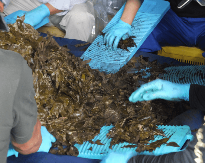 7月下旬から8月上旬頃に茶葉を刈り取り、チョッパーで荒く刻んだ茶葉を蒸煮機で蒸し、残っている太い枝を取り除きます。その茶葉を板の囲いの中に積み重ね、約60度に保たれるように2、3日に1回切り返しを行いながら約40日間かけて発酵させた後、天日乾燥を経て出来上がります。発酵時に60度まで温度が上がることから、発酵に関わる微生物はカビや耐熱性細菌が主体となっています。