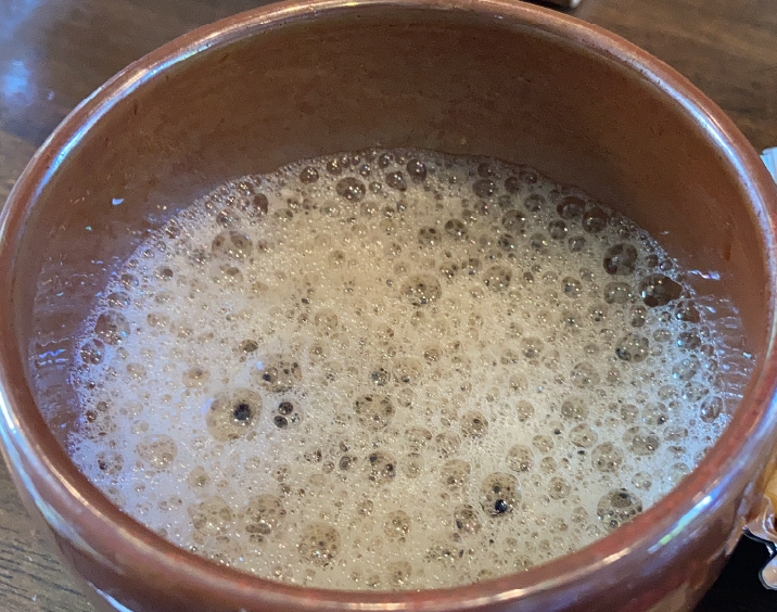 煮出したバタバタ茶を茶せんで泡立てて提供している。(写真提供/内野教授)