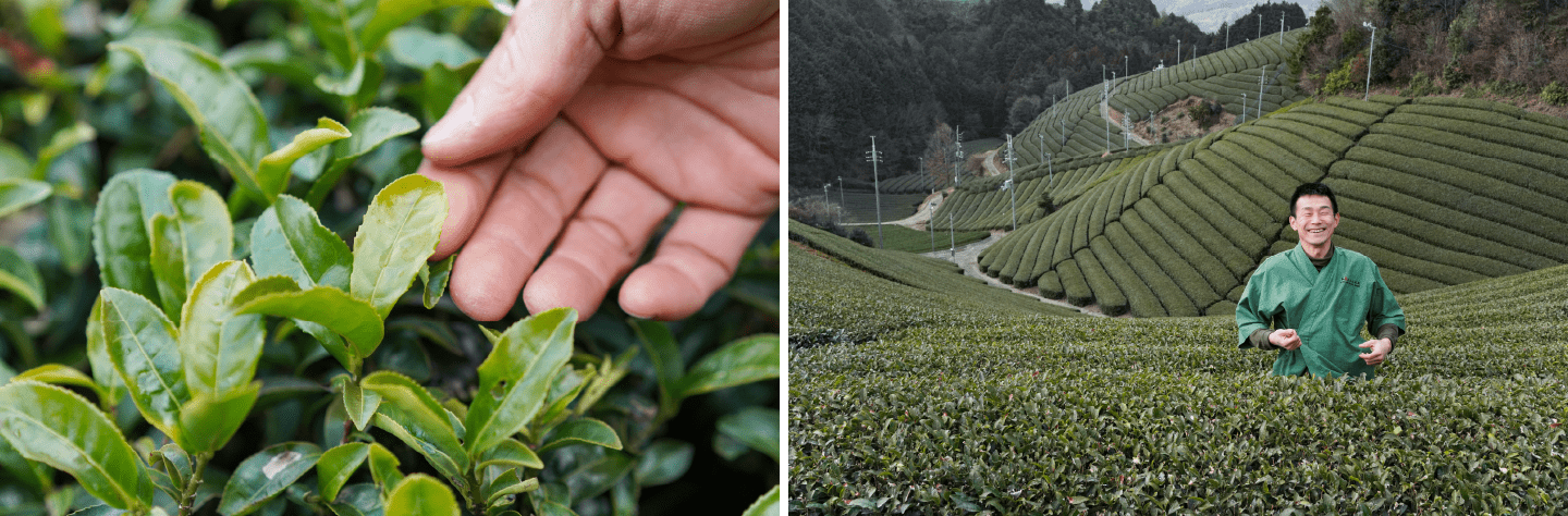 自社茶園120ヘクタール、系列茶畑180ヘクタールの直営茶畑で安定的な生産を行う。(2022年2月時点)