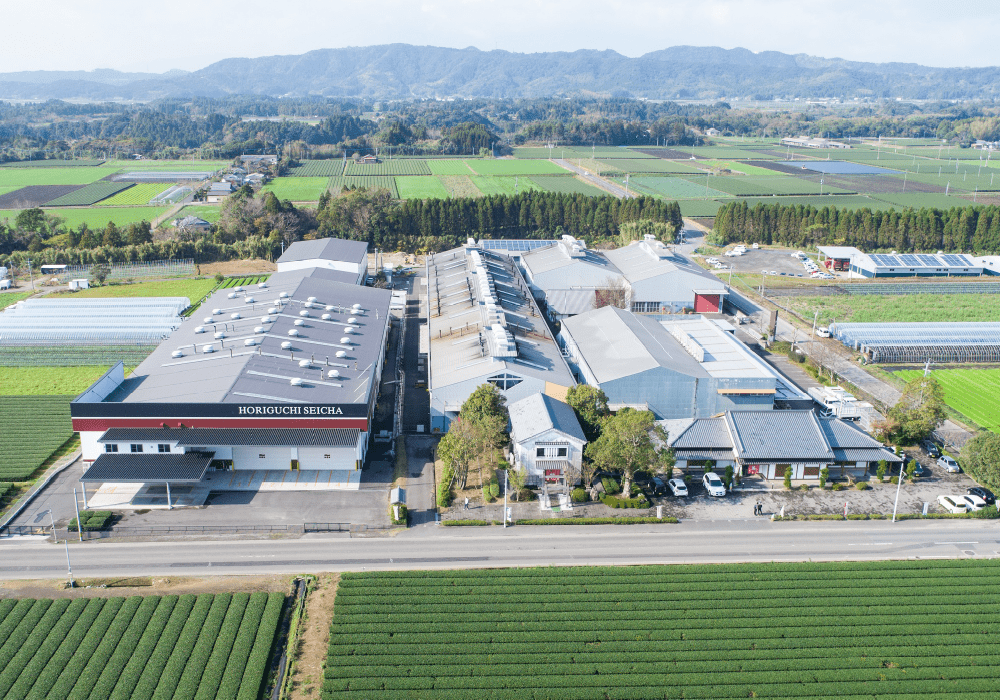 茶の栽培から製造、系列会社(株)和香園での販売に至るまで一貫経営を行なう、鹿児島県志布志(しぶし)市の鹿児島堀口製茶(有)。同社では、独自の農法により化学農薬に頼らない、輸出に対応した茶葉の生産や、海外での抹茶需要の高まりに対応するため碾茶(てん茶)工場を新設し、高品質な茶の生産体制を構築するなど、幅広い取り組みが行われています。今回は、そうした取り組みについて、同社の堀口大輔さんに教えていただきました。