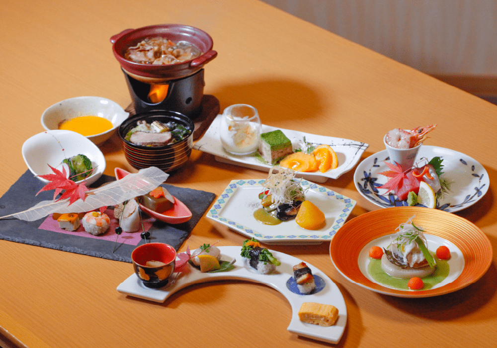 同社のレストランで提供されるコース料理には、お茶がたっぷり使われている。