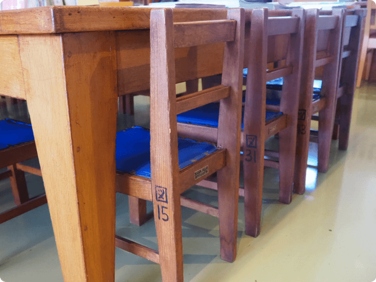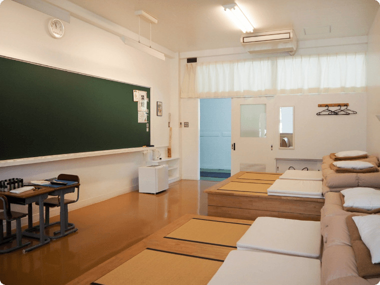 グラウンドは広場や駐車場に、体育館は直売所に、校舎1階の教室は飲食店や子どもの遊び場、ギャラリーなどに、2階の教室は簡易宿泊所や音楽室に生まれ変わりました。机、椅子、黒板、ロッカーなど学校の備品も再利用しています。コストの削減になるだけでなく、来訪者に小学生時代を思い出してノスタルジーを感じてもらいたい、という狙いがありました。