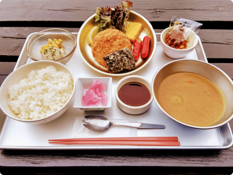 懐かしさを感じるのは、校舎や備品だけではありません。「里山食堂」や「Cafe金次郎」といった施設内の飲食店には、味も見た目もかつての給食そのもののメニューがあり、食べていると小学生時代にタイムスリップする感覚を味わえます。