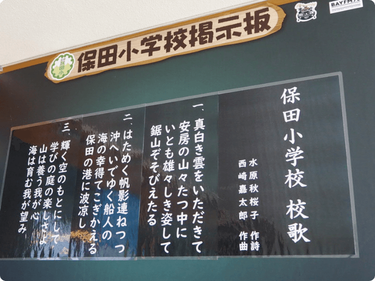 旧保田小学校の卒業生でもある鋸南町町長の強いこだわりから、施設名はずばり「都市交流施設・道の駅 保田小学校」に決まりました。とてもキャッチーでインパクトがあります。
