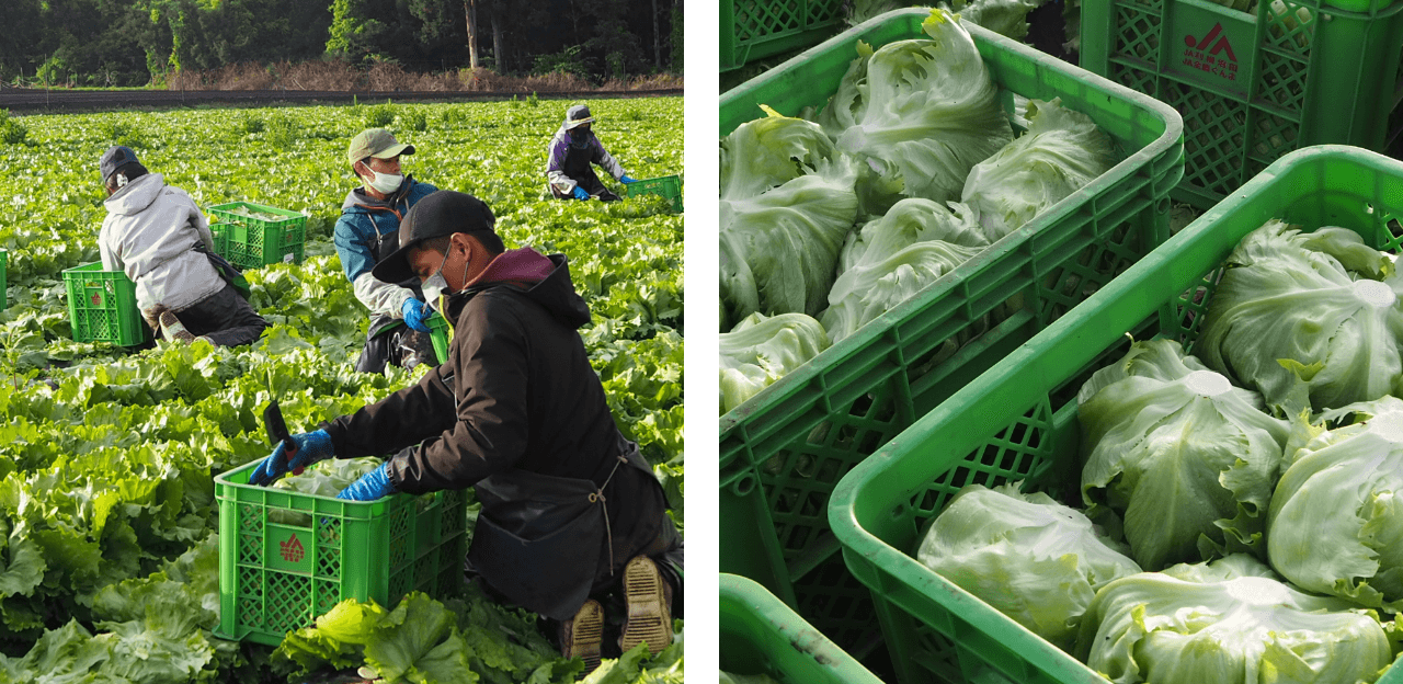 「レタスは鮮度を維持するために、気温が低い夜明け前から収穫します。水分をたっぷり含んだ新鮮な朝採りレタスを、一人でも多くの消費者に味わっていただきたいと、日々奮闘しています」