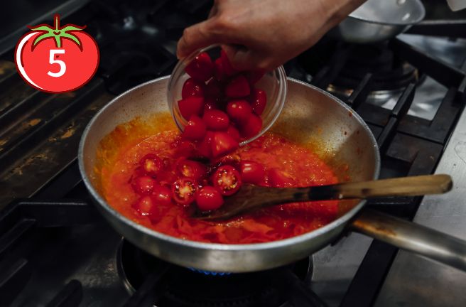 トマトを入れた状態で煮立てると崩れて中身が出てしまうので注意