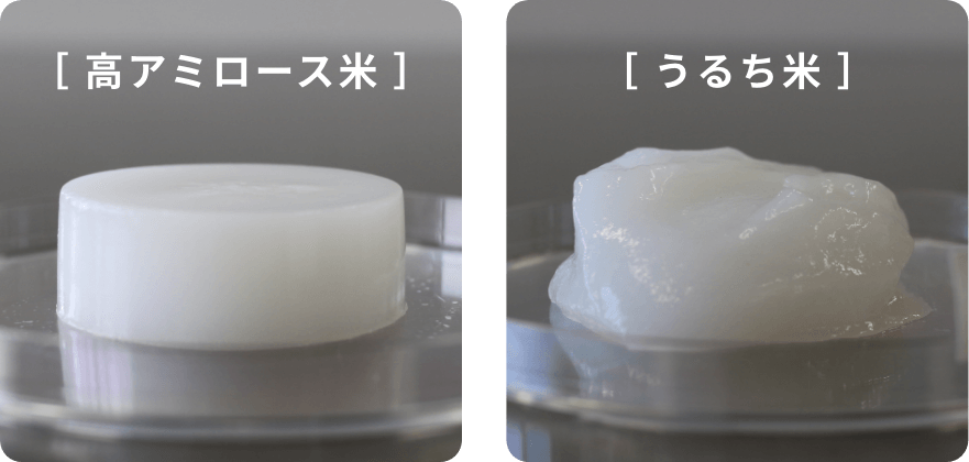 「その後、米粉の粘度測定をしていた際、ほかの米と異なり、高アミロース米の米粉に水を加えて加熱してできる糊を冷却すると、固まってゼリー状になることに気づきました。この性質を何かに利用できないかと考えたのが、この研究の始まりです」