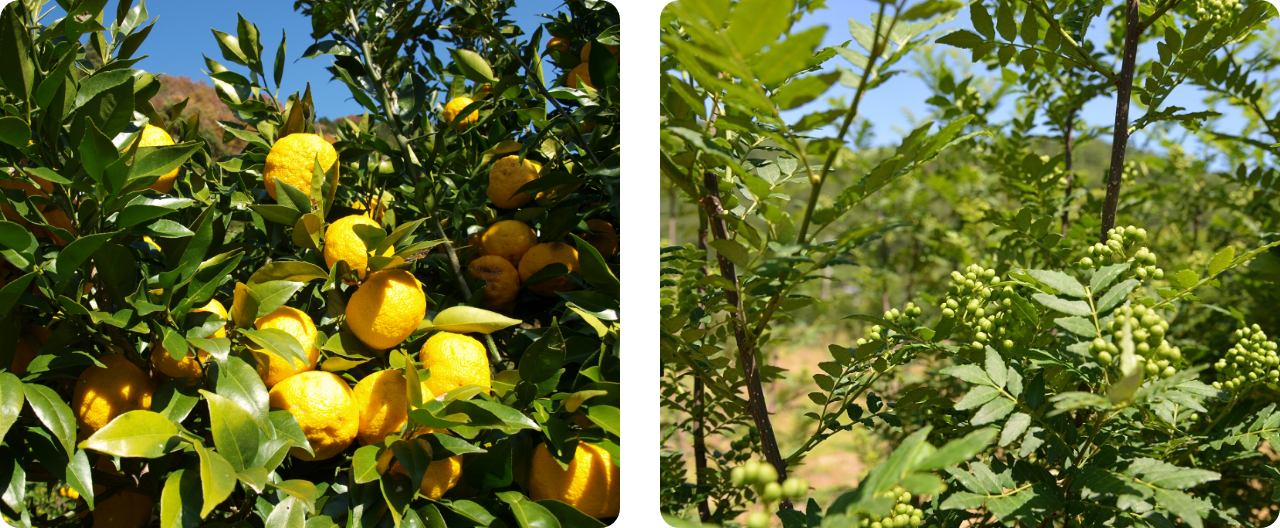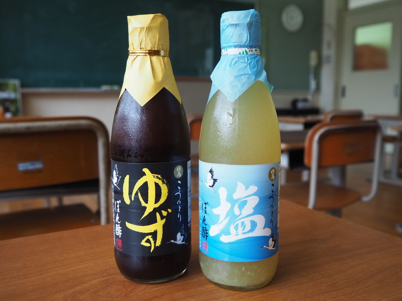 地域の生産者と連携した商品開発にも力を注いでいます。たとえば、「コウノトリゆずぽん酢」は蔵付酵母を利用する醤油蔵「大徳醤油」の天然醸造醤油を、「コウノトリ塩ぽん酢」は竹野浜のミネラル豊富な海水でつくられる「誕生の塩」を使用しています。地域産の食材にこだわるのは、創業以来の一貫したポリシーです。