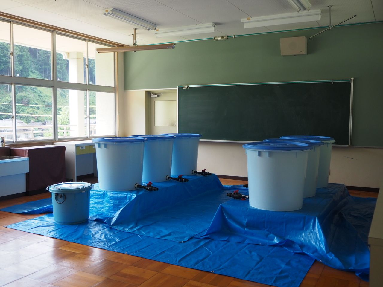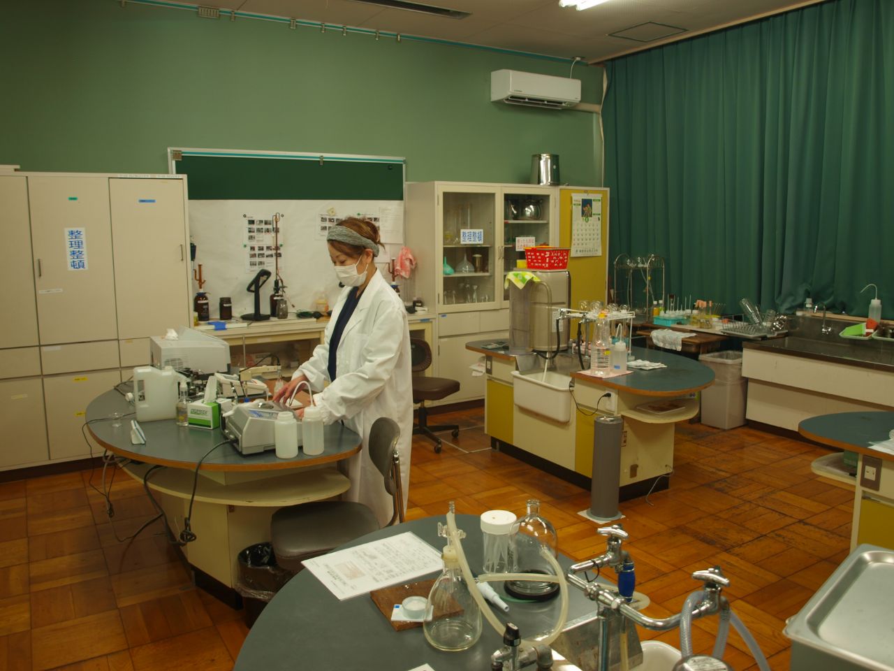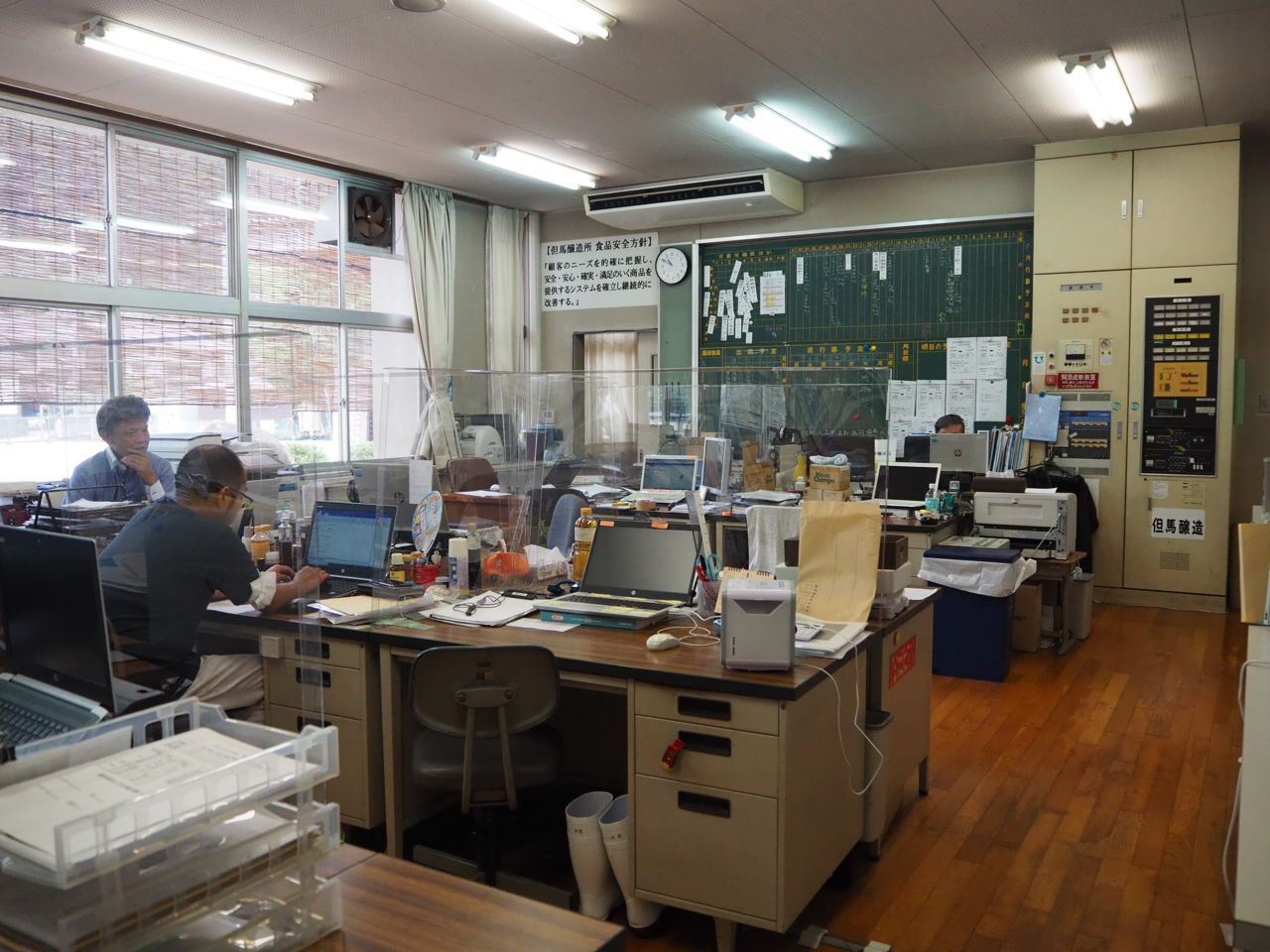 体育館と違って、校舎は小学校時代のままの状態で使われています。元職員室は事務所、元理科室は醸造に必要な菌類の研究や検査を行う分析室になりました。元校長室は応接室、元教室は倉庫や工場見学者へのレクチャー室として利用されています。