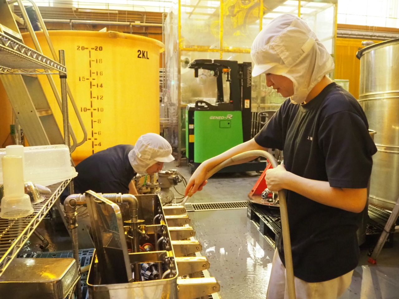大友さんは、立ち上げから還暦を迎えた2年前まで工場長という肩書でした。それ以前はキング醸造の営業マンとして、長年全国を飛び回っていたそうです。「突然の異動命令で、人よりシカが多い山奥に単身赴任することになりました(笑)」。建物の改修段階から指揮をとり、地域と折衝を重ね、人を集め、1年がかりで工場の稼働にこぎつけた立役者です。「まさにゼロからのスタートでした。山に囲まれているので、冬はかなり雪が降ります。慌ててトラックヤードに屋根を付けました。奥地から商品を出荷するのは大変ですし、いいことばかりではありません」と苦労を語ります。