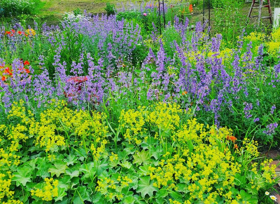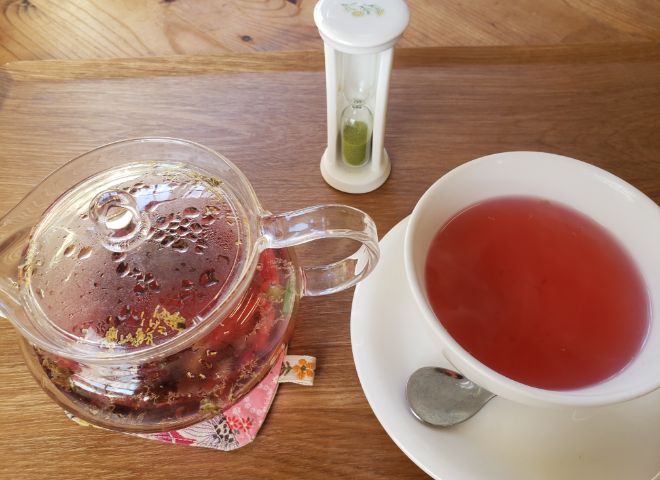 キャットミントやレディースマントル、マリーゴールドなど、約100種類に及ぶハーブが育つハーブガーデン。6月から9月ごろまでは花々が庭に彩りを与えてくれます。今年からはハーブティーを楽しむお茶会を月1回開催しています。