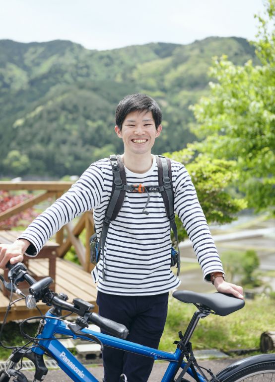 岐阜県東部、南飛騨の山間に位置する下呂市馬瀬(まぜ)。この地域を表す言葉に「馬瀬七里十里五十淵」があります。南北約28キロメートル(七里)の間に10の集落が連なり、その中央を縫うように流れる馬瀬川には50もの淵がある、という意味です。全国有数の清流として知られる馬瀬川は、変化に富んだ水辺の景観を生み出すとともに、古くから流域の人々にさまざまな恵みを与えてきました。馬瀬ではフランスの地方自然公園制度をモデルに、人々の暮らしも含めた全体を「馬瀬地方自然公園」と捉え、地元住民が中心となって自然と共生しながら農村の持続的な発展を目指す活動を行っています。そんな馬瀬をE-Bike(イーバイク)で巡るのが「UMESEKO TOUR(ウメセコツアー)」です。代表兼ツアーガイドの世古乃佑(せこだいすけ)さんは、地域おこし協力隊として2017年に馬瀬へ移住した後、翌年にツアー事業を開始。2019年には大手旅行プラットフォーム「トリップアドバイザー」のトラベラーズチョイスアワードを受賞しました。
