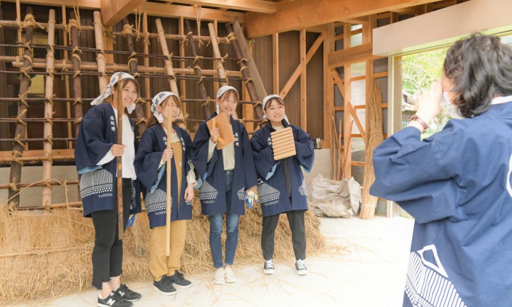 茅葺き屋根の屋根葺き体験