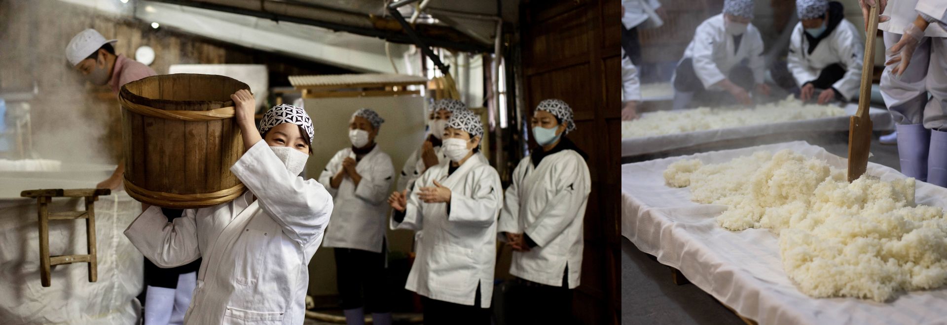 蒸した米を、麹(こうじ)用、酒母(しゅぼ)用などそれぞれの用途に応じた適温まで冷ます「放冷」という作業を行います。