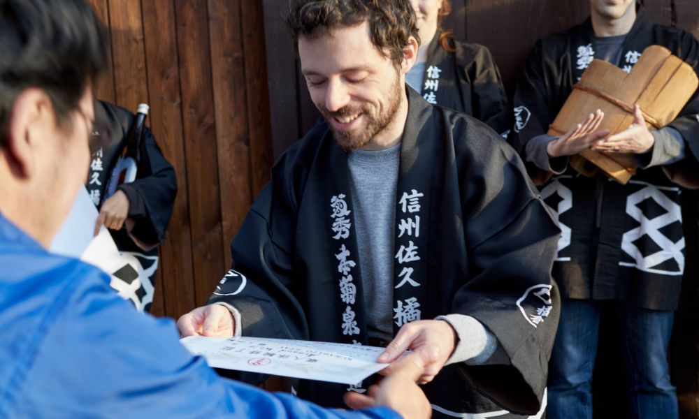 プログラムの最後にはクイズ形式の修了試験を行ったうえで、KURABITO STAYの蔵人の一員になった証として蔵人体験修了証が授与されます。