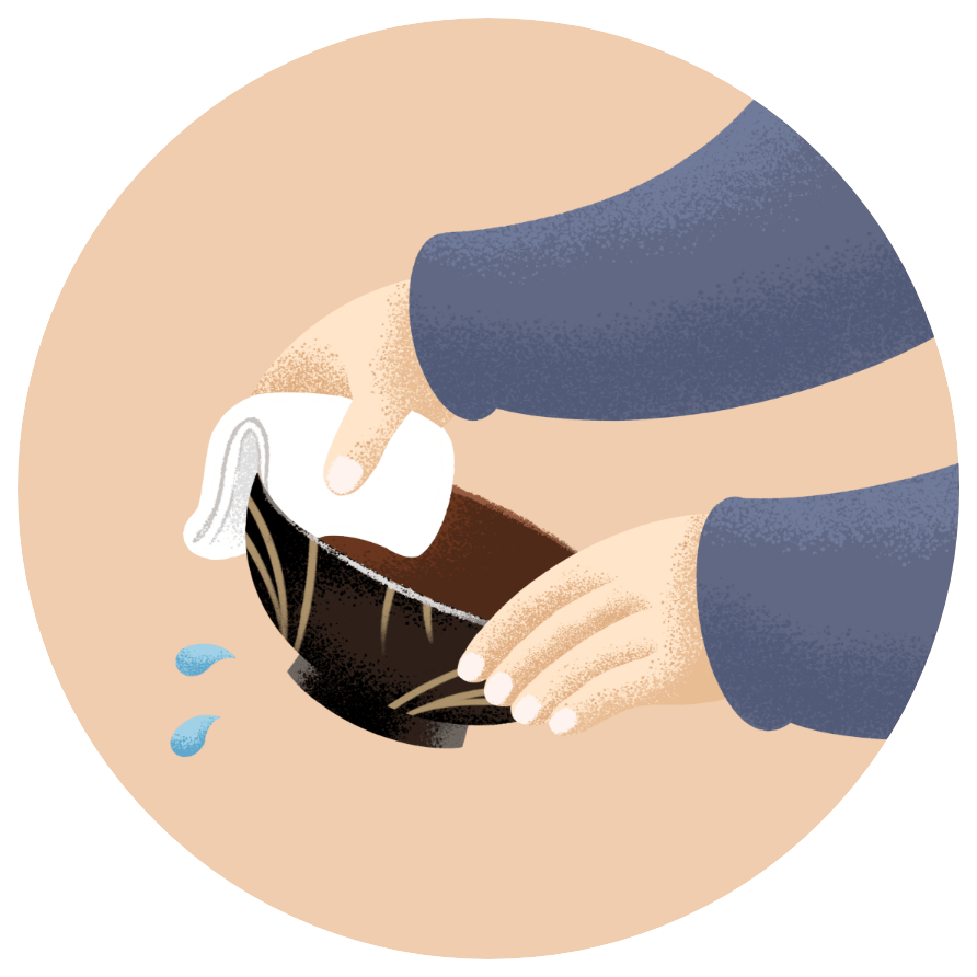- 油などはうすめた洗剤で軽く洗いましょう。