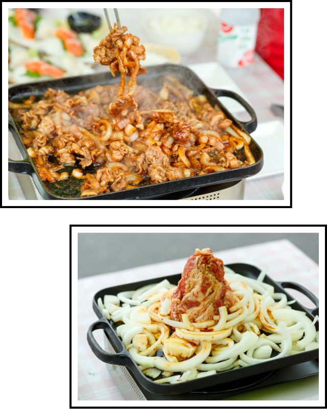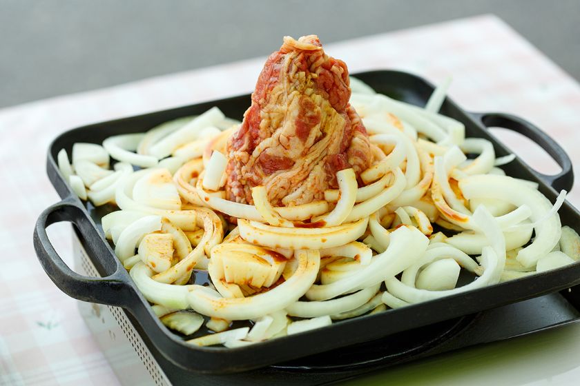 バラ焼きは、牛バラ肉とたまねぎに甘辛のたれをからめて鉄板で焼いた料理です。1958(昭和33)年、米軍三沢基地の前の屋台で誕生したとされています。