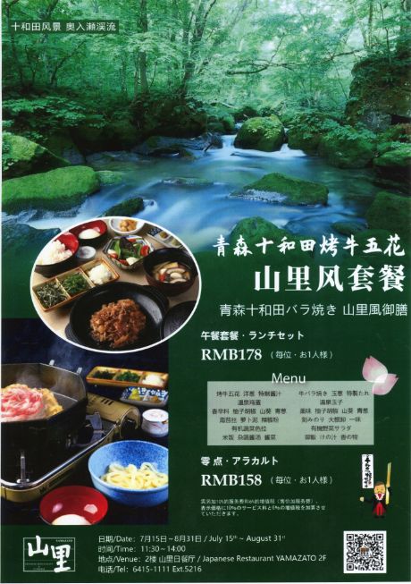 上海の日系ホテル内にあるレストランで開催された「十和田バラ焼き」メニューのポスター。