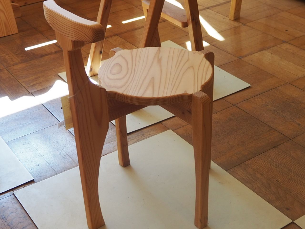 スギ材の椅子に触れてみました。広葉樹の重厚な家具とは異なる、やわらかくぬくもりのある質感です。ずっと座っていても体が痛くならないし、冬でも冷たさを感じないという声が多いとのこと。今度は持ち上げてみて、とても軽いことに驚きました。これなら高齢者やこどもでも軽々と持ち運ぶことができそうです。「スギ材は木の中でも特にやわらかくて軽いのが特徴です。やわらかいので加工性に優れていますが、強度と耐久性に難があるため、家具にはあまり使われてきませんでした。そこで、この弱点を克服する独自の工法を開発したのです」と薄井さん。