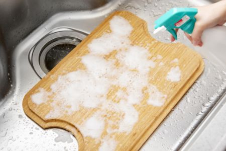 可能であれば、包丁やまな板は肉と魚介類用、野菜と果物用などと使い分けると安全です。また、調理器具やスポンジは使用後定期的に熱湯や塩素系漂白剤で消毒を行いましょう。