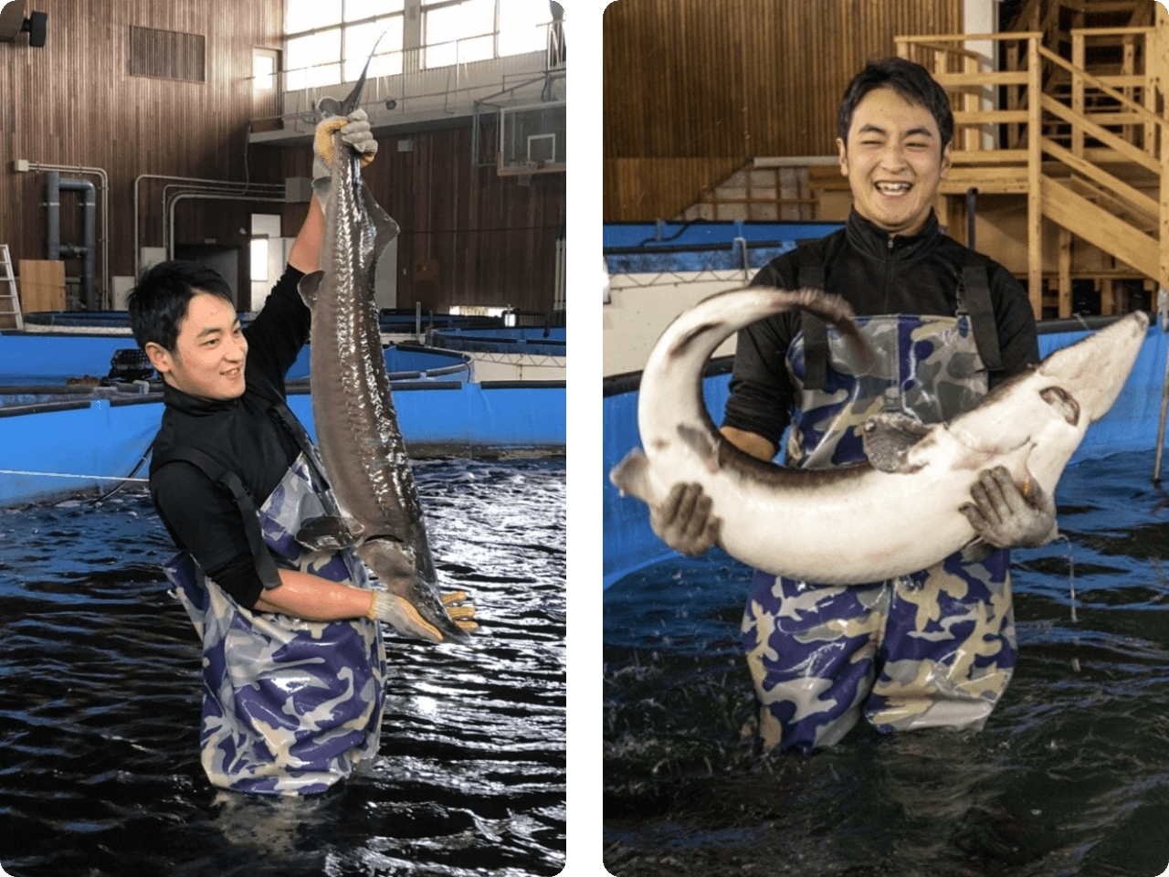世界3大珍味のひとつといわれるキャビアは、一般的にチョウザメの卵の塩漬けを指します。チョウザメとは古代魚の一種。全体的にサメに似ていること、ウロコの形が蝶に似ていることからこの名が付いたと言われていますが、サメの仲間ではなく淡水魚です。乱獲などの影響により、近年は天然物が減少の一途を辿っています。「日本でチョウザメの養殖研究が始まったのは、当時のソ連から技術提供を受けた1983年と聞いています。今では各地で養殖と国産キャビアの生産が行われています。この事業を始めるにあたり、全国の養殖場を視察して一から勉強しました。何しろ私自身、それまでキャビアを食べたことすら、ほとんどありませんでしたから」