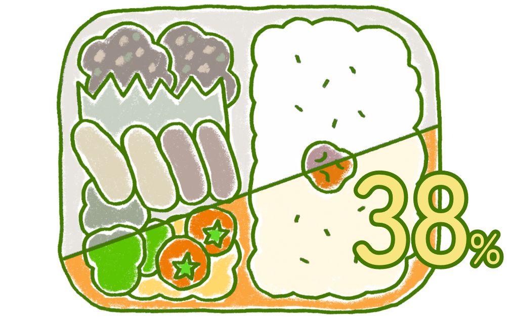 食料自給率は、食料の国内消費に対する国内生産の割合を示したものです。つまり、国全体で見たときに、私たちが消費した食料に対して国産がどれくらいかを表す数字です。日本の現在の食料自給率は、カロリーベースで38パーセント、生産額ベースで63パーセントとなっています。
