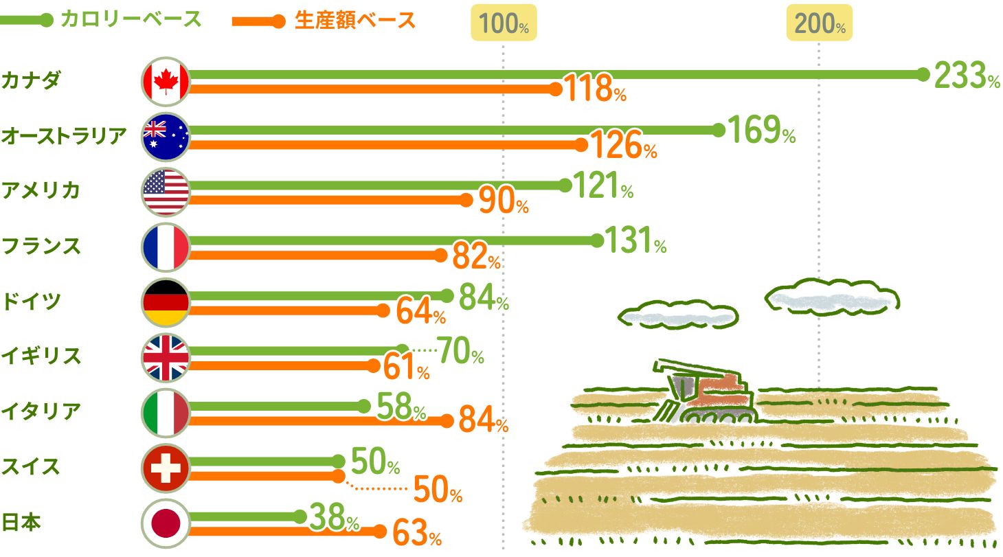 どの国でも気候的に国内では生産が難しい農産物などがあるので、全体の食料自給率が100パーセント以上あるからといって、輸入に頼っていないということにはならないのです。