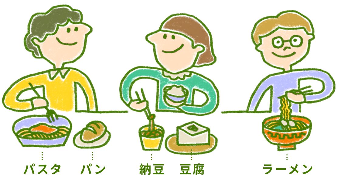 小麦の自給率は17パーセント、大豆は7パーセントです。うどん、味噌、醤油、納豆、豆腐など日本の食を昔から支えてきた小麦と大豆の自給率が低いのは意外かもしれません。