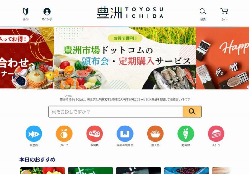 2004年に開設された築地市場直送の食材を取り扱うECサイト「築地市場ドットコム」が2018年の豊洲市場開場を機にリニューアル。豊洲市場の卸業者や全国の生産者とのネットワークを活かして豊洲市場に入荷する水産物、青果物、加工品を販売しています。早朝、競り落とした鮮魚がその日のうちに届く(東京23区限定)当日便や掘り出し物コーナーなど、市場ならではのサービスも。