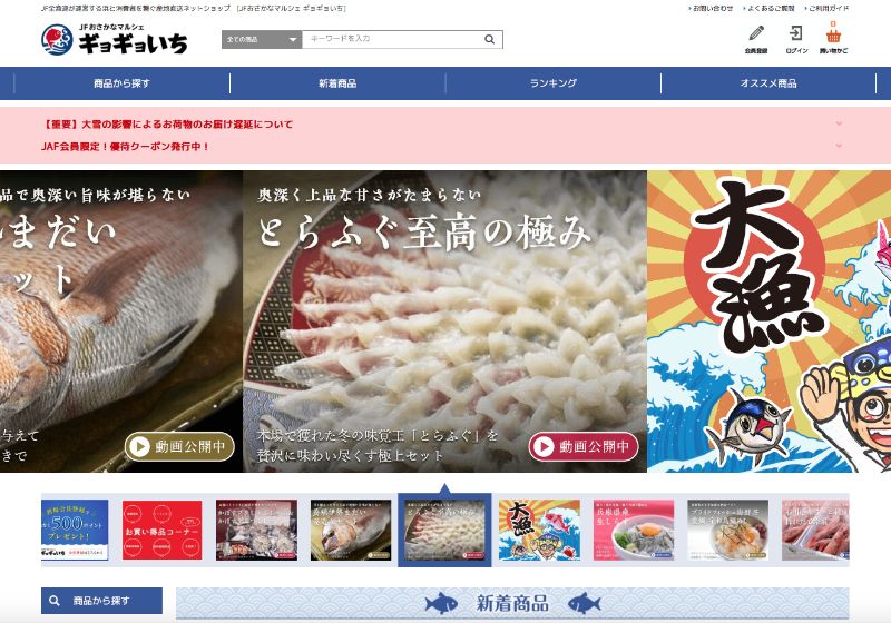 地域や県別、魚種別になっていたり、季節のおすすめがあるので見ているだけで楽しい。「決済後キャンセル不可」など注意事項もあるのでしっかり確認を。