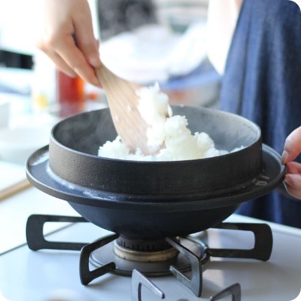 ごはんを炊きます。炊けるまでの間にねぎを刻みます。