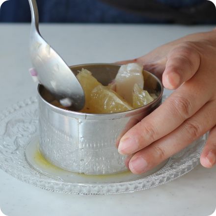 器にセルクル型を置き、4を詰めて型を抜きます。