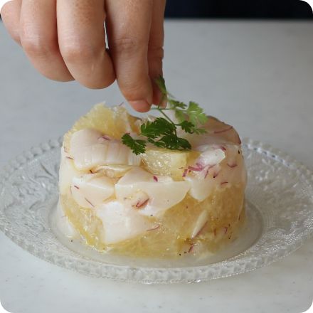 「むつ湾産ほたて貝柱」を使った ほたてのグレフル カルパッチョ