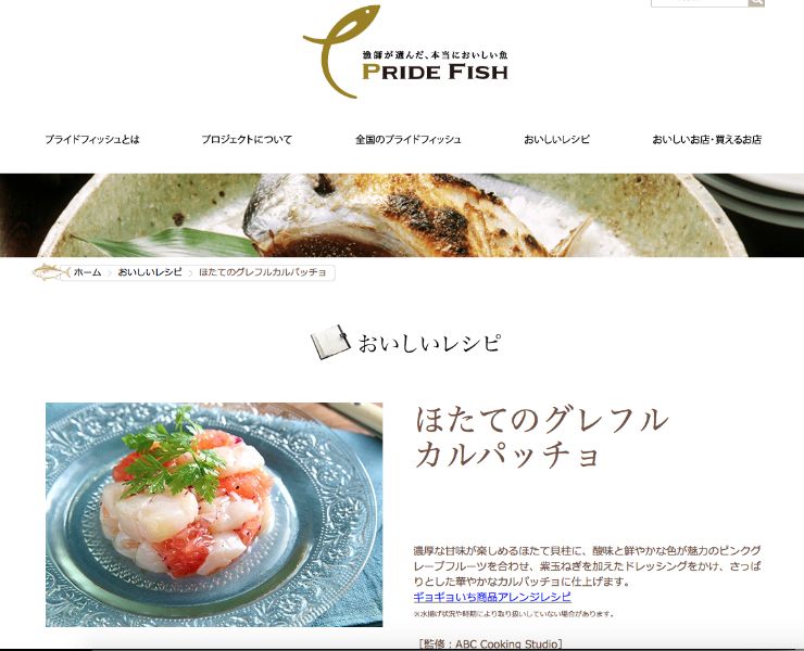 ギョギョいちサイトにリンクされている「プライドフィッシュと地魚のおいしいレシピ」で見つけたカルパッチョに決めました。レシピを見て、材料を揃え、画面の作り方に沿って調理に挑戦!