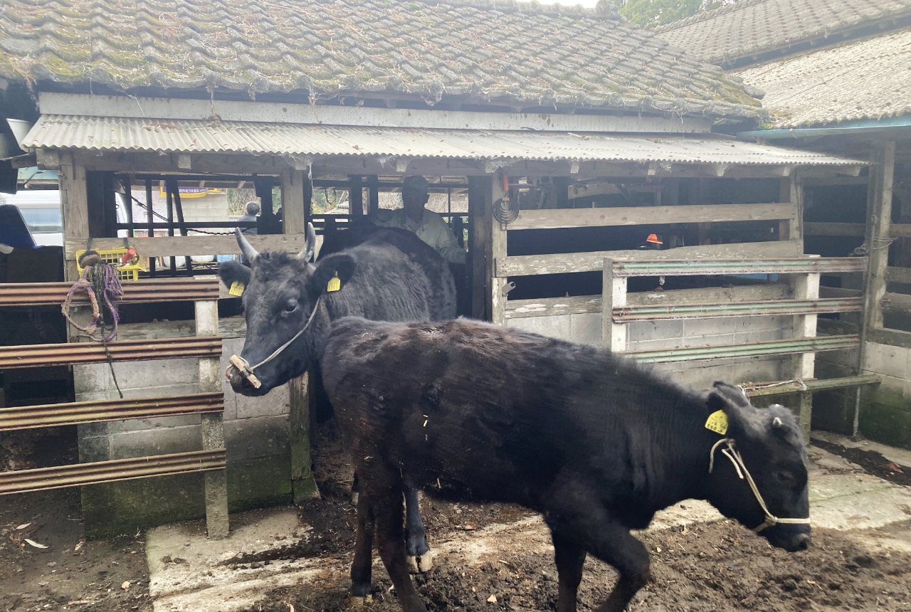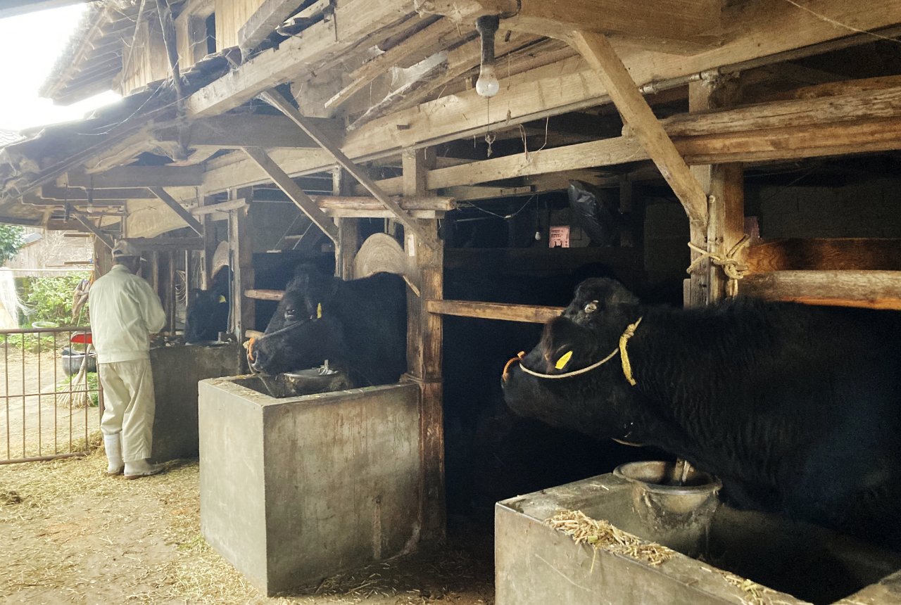 山間の集落の小さな牛舎で、少頭数の牛を