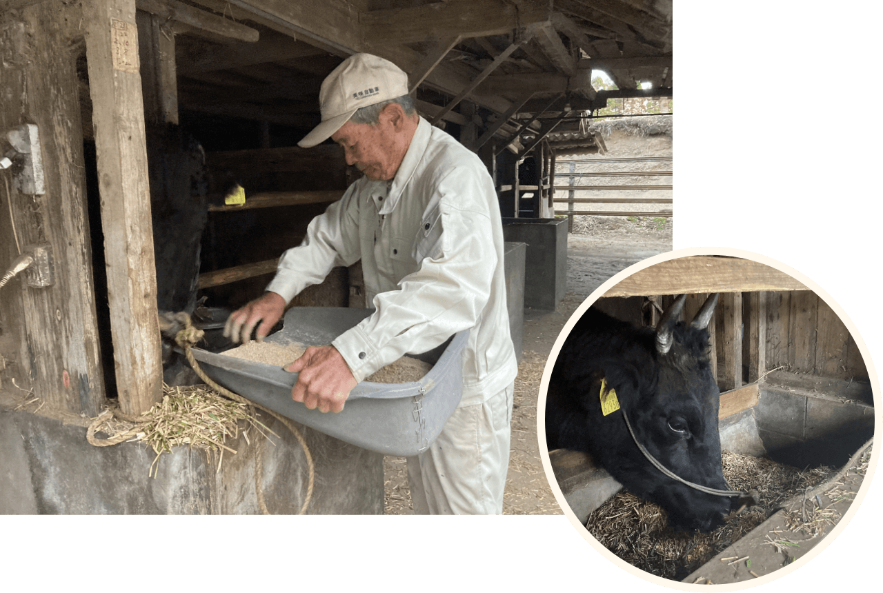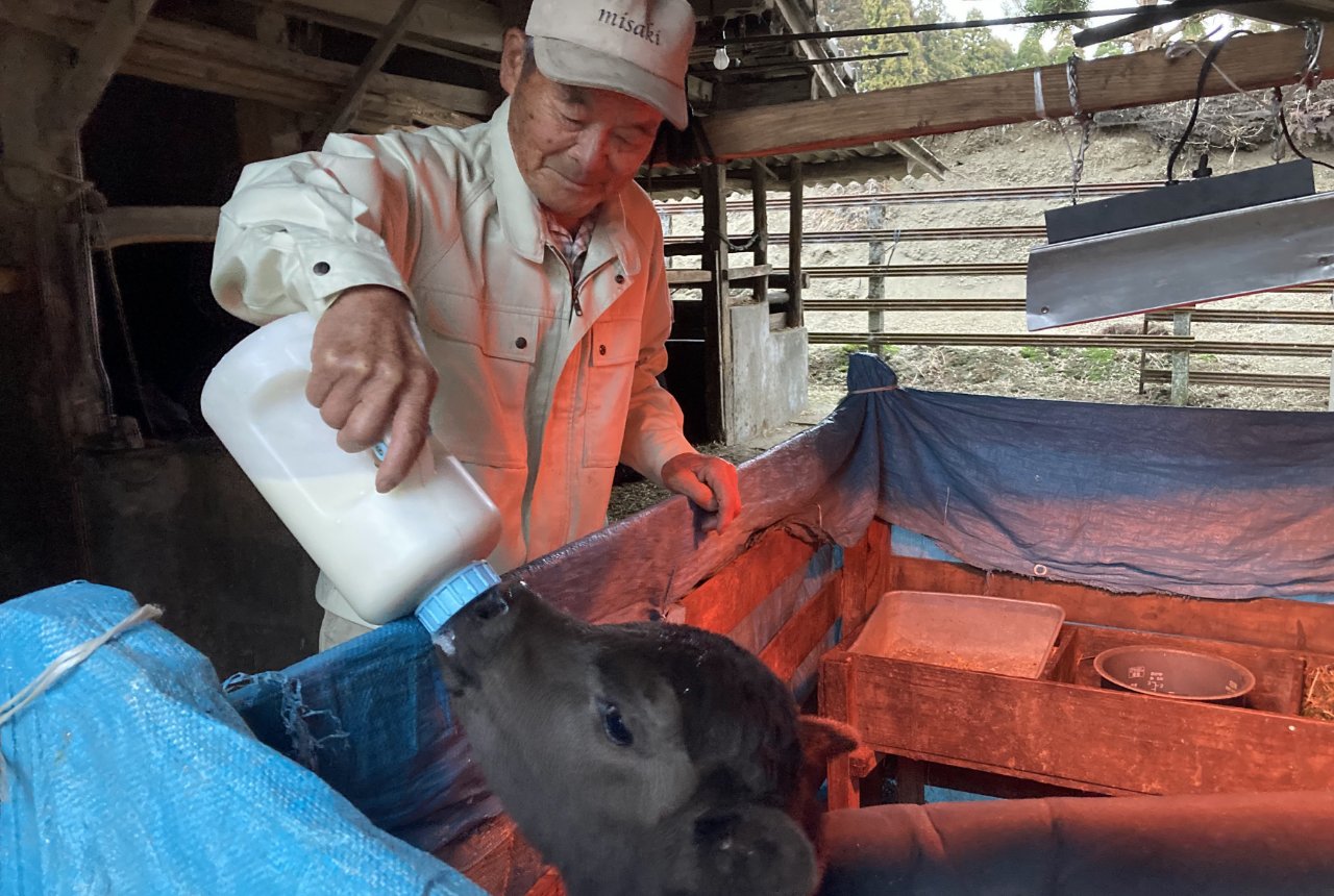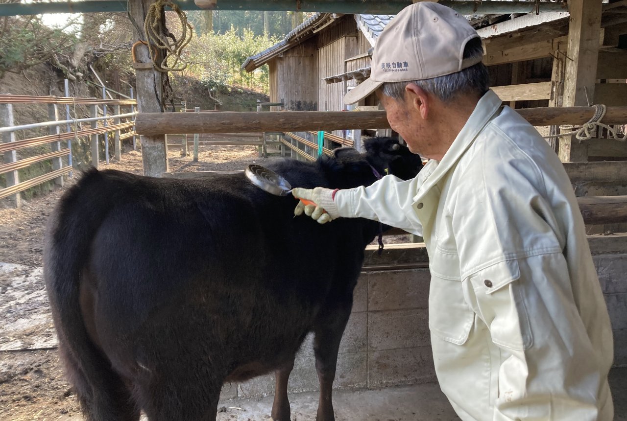 1935年生まれ。飼養している母牛は現在5頭。生まれた子牛を約9カ月間育てて家畜市場に出荷している。2022年10月開催の第12回全国和牛能力共進会に、87歳にして初出品。母・子・孫の3世代にわたる雌牛の改良成果を競う第5区(高等登録群)で頂点に輝いた。