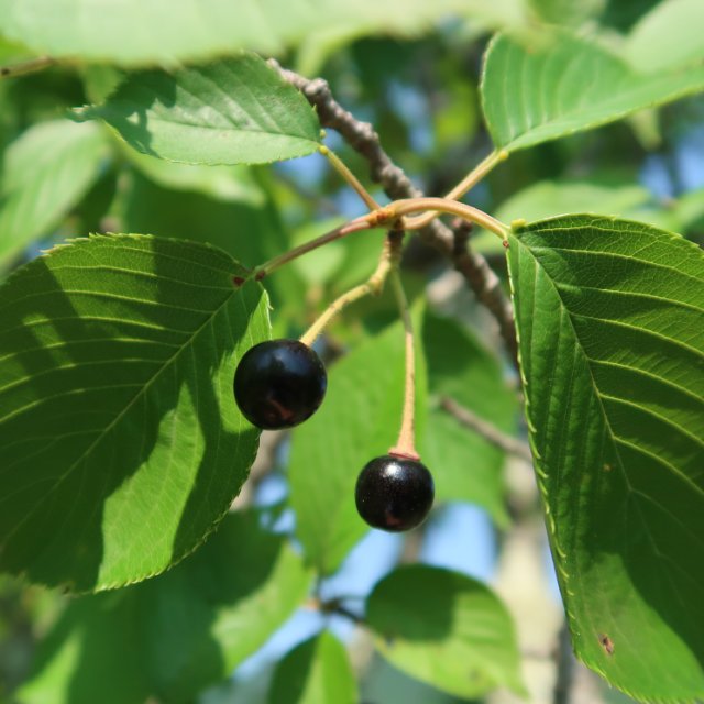 ‘染井吉野’の果実。食用のサクランボとは異なり、その実は黒く小さい。また、わずかだが毒性物質が含まれるため食べるのは厳禁だ。