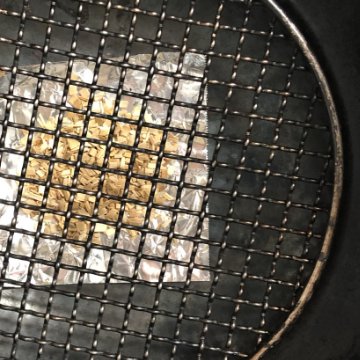 フライパンにアルミホイルを敷き、その上に桜のスモークチップひとつかみ(10グラムから15グラム)を乗せ、網を置けば準備完了です。