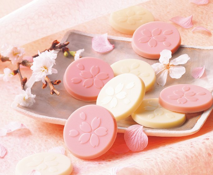 桜風味をプラスした、ストロベリーチョコレートとホワイトチョコレート。