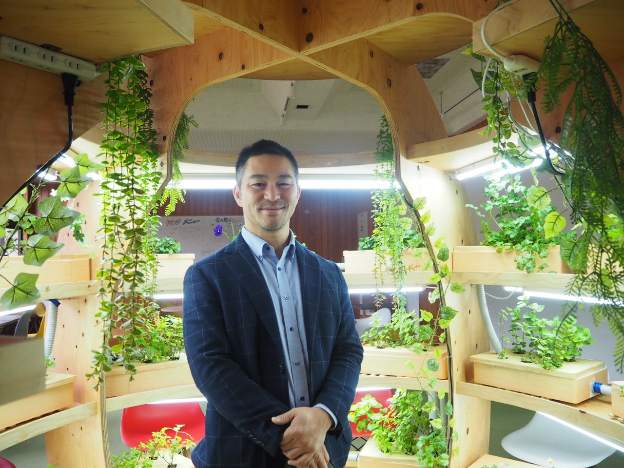 本社内をはじめ、福岡市内のマンションやガレージで、室内型水耕栽培を実験的に行ってきた(株)ハコブネ。しかし空間を完全閉鎖できないなど諸問題が発生します。もっと本格的に研究できる場所がほしいと考えていたときに、廃校活用のアイデアが浮かんだそうです。インターネット検索で八女市が旧木屋小学校の活用事業者を募集していると知り、1994年築の比較的新しい校舎に惹かれて手を挙げました。「すぐに企業誘致推進係の方から『話を聞きたい』と連絡があり、プレゼンに伺ったら大歓迎を受けました。未来につながる事業内容だと期待していただいたのかもしれません」