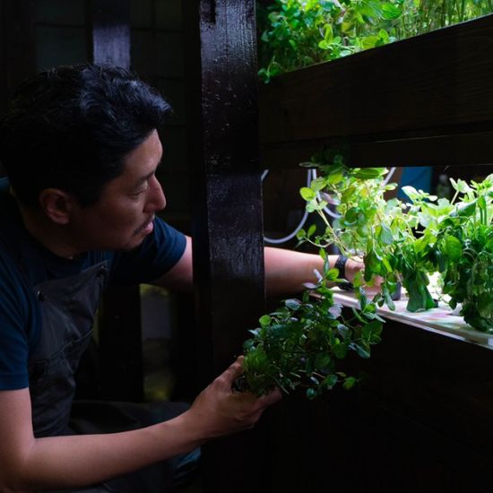 「室内型水耕栽培なら、都市の限られたスペースでも農業ができます。輸送コストがかからず、新鮮な作物を消費者に供給できるのが都市農業のメリットです。空き家・空きビルの有効活用策にもなりますよ」と森さん。水耕栽培ユニットを導入した福岡市内のバーでは、店内で育てたミントをその場で収穫し、カクテルに加えて提供しています。栽培中のミントは視覚・嗅覚の癒し効果があるインテリアとしても人気だとか。