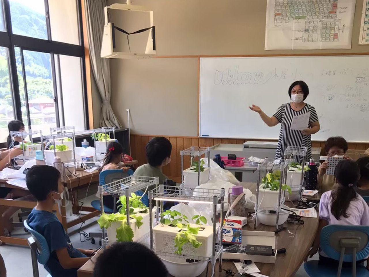 市と5年間の賃貸借契約を結び、ラボがスタートしたのは2020年4月。元々エアコンが付いていた校長室・家庭科室・保健室の3部屋が栽培ルームに、職員室がスタッフルームになりました。改装は最低限にとどめ、小学校の面影をできるだけ残しています。施設名の「895」は所在地の地名、八女・黒木・木屋の頭文字を数字化したもの。地域に根差し、近隣住民とも交流できる施設になるようにとの願いを込めて名付けました。