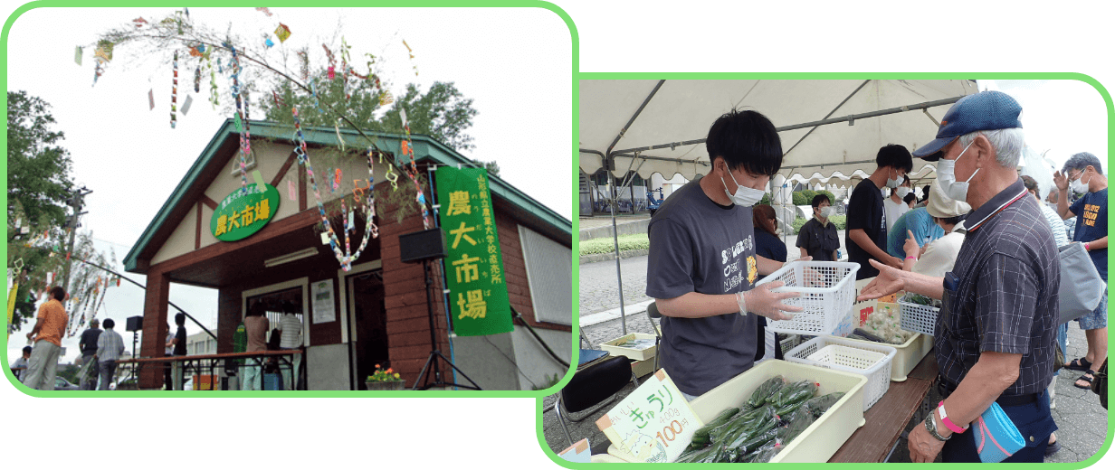 山形県立農林大学校では、学生が実習を通じて生産した農産物や加工品を販売する「農大市場」を年4回開催しています。学生にとっては実体験で販売管理を学べる貴重な機会ですが、地域住民にも大好評。昔ながらの製法でつくった味噌や梅干し、材料にこだわったトマトケチャップなどの加工品にはファンも多いのだとか。