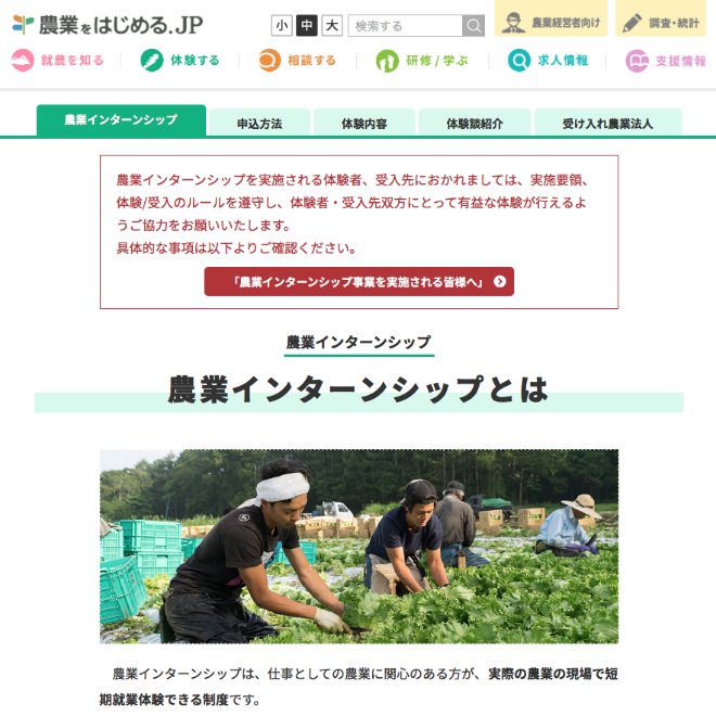 (公社)日本農業法人協会では農林水産省の補助事業を活用して、農業に関心のある人が全国に200ある農業法人などで短期間(2日以上6週間以内)農業を体験することができる農業インターンシップ事業を行っています。詳しくは公式サイトをご覧ください。