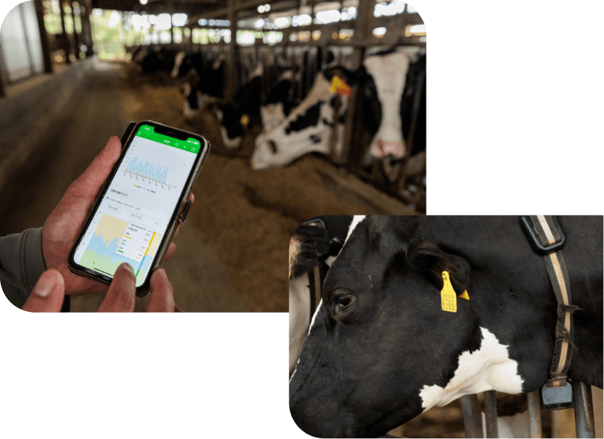 酪農において、牛の発情チェックは非常に重要な仕事です。牛の発情は21日周期で起こり、平均12時間続きます。そのタイミングで人工授精を行わなければ妊娠できず、乳を得ることができません。そこで須藤牧場では2016年からICT機器を活用し、繁殖成績の向上や疾病の早期発見につなげています。首掛け式のデバイスが牛の活動を検知し、AIが体調の変化を判断して従業員に通知します。またアプリを駆使して記録や分析、情報共有を行うことは、従業員の負担軽減にも役立っています。