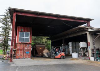 飼料倉庫および飼料の調整場所。乳酸発酵による漬物のような香りが漂っています。