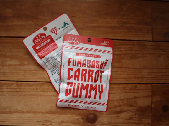 都心へのアクセスが良い船橋市は、東京のベッドタウンとして知られていますが、郊外へ少し車を走らせると辺りには広々とした田園風景が広がっています。そこでは特産のなしや「船橋にんじんグミ」といったコラボ商品が生まれているほか、4月下旬の船橋にんじんの初出荷時には、ジェッツカラーの赤白2色でチームロゴをあしらった出荷箱が使用されています。こうした土地柄もあって、食育や農業に関する取り組みが多いことも特徴になっています。