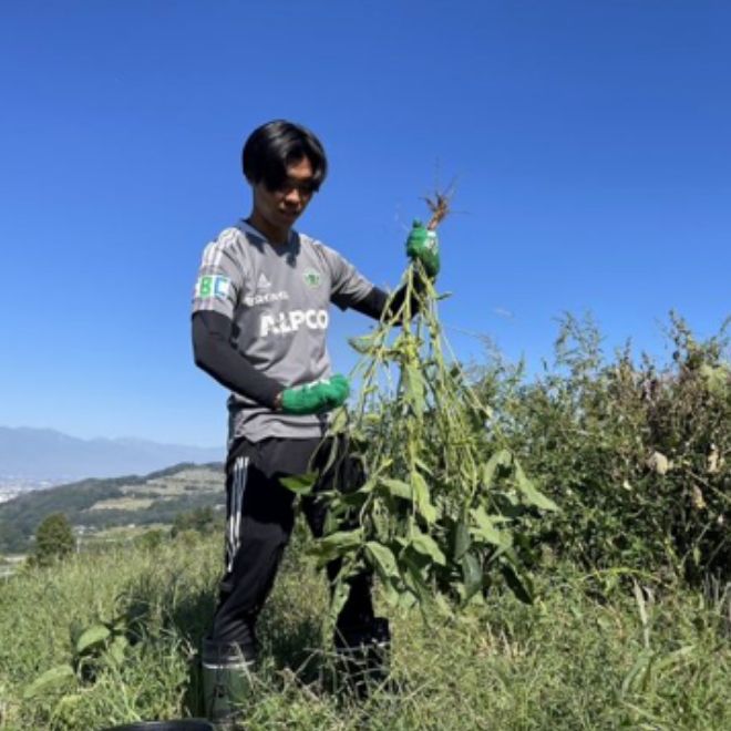 松本山雅FCによるあやみどりの栽培は、ホームスタジアム “サンプロアルウィン” に隣接する畑など、松本市内3カ所、安曇野市内2カ所、生坂村内1カ所で行われています。畑では、食育と選手との交流を合わせた体験教室を通年で開催しています。