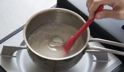 粉寒天は必ず沸騰させて煮溶かす。沸騰前に火を止めると固まりにくくなる。