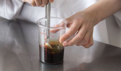 黒蜜にバルサミコ酢を加え、よく混ぜる。